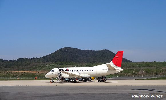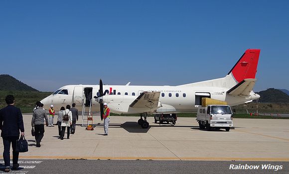 JAC3433便で隠岐空港に着陸。 2015年4月22日 |