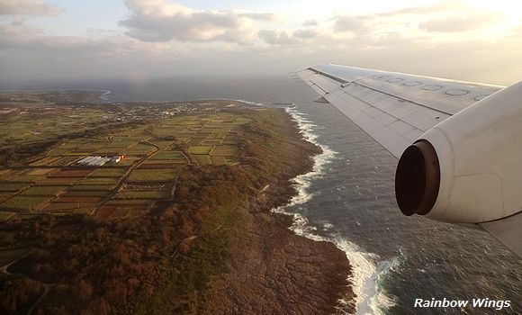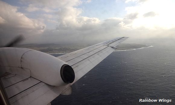 喜界島行のJAC3835便で、まもなく喜界島に到着。 2015年1月15日 |