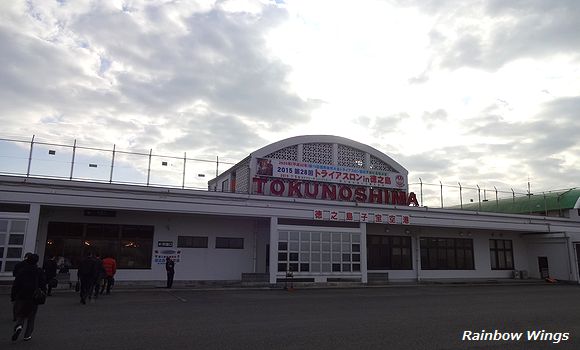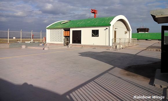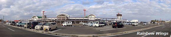 徳之島空港のターミナルビル前をパノラマ画像で。 2015年1月16日 |