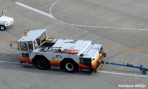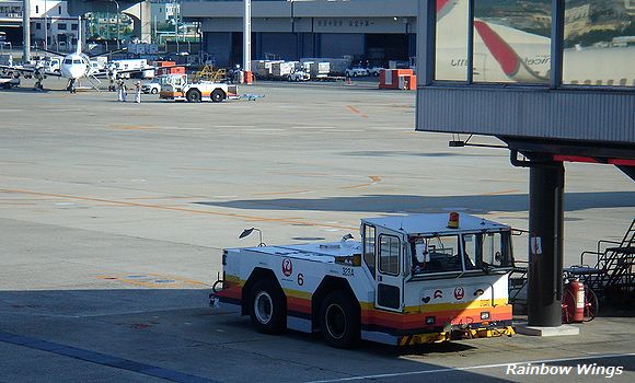 なんと、旧日本エアシステムのレインボーカラーのトーイングカーが現役で活躍!! 2011年7月25日 |