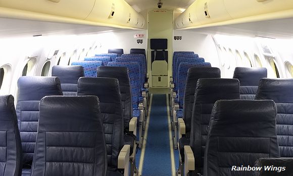 忠実に再現されたボンバルディアQ400の機内。 2013年12月18日 |
