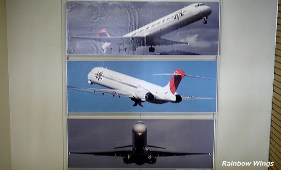 展望デッキへ向かおうと階段を登っていたら、MD-90の大きな写真が3枚も!! 2012年8月31日
