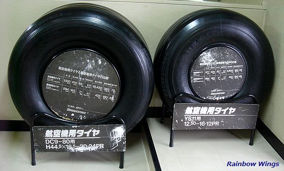 展望デッキの入口に、DC-9-81とYS-11のタイヤが展示されていた。