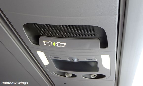 頭上のライト周りはこんな感じ。 JA3741便、機内にて 2017年4月26日 |