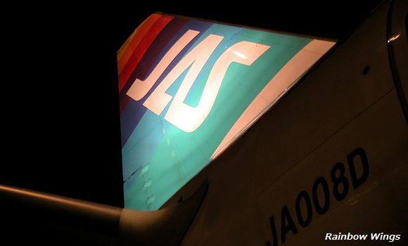 レインボーカラーで運航された機材としては、JAS史上最大のキャパシティを誇る。
