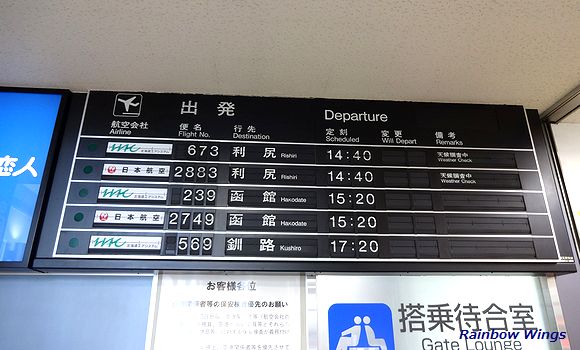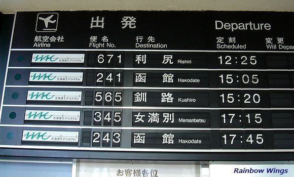 JALとのコードシェアが始まる前は、このような表示でした。 丘珠空港にて 2012年4月11日 |
