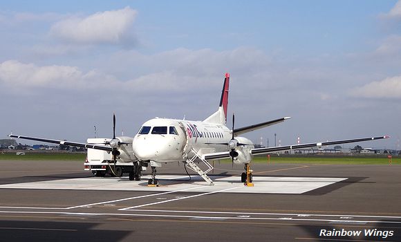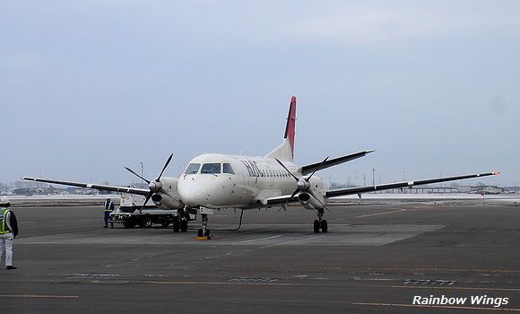 利尻行、アークカラーのSAAB340B。 札幌丘珠空港にて 2013年10月23日 |