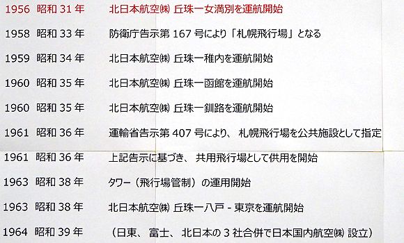札幌丘珠空港2階に設けられた沿革のコーナー。 2022年1月29日 |