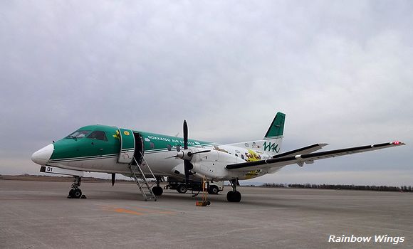 奥尻空港から到着した、SAAB340B(JA02HC)。 2015年4月2日 |