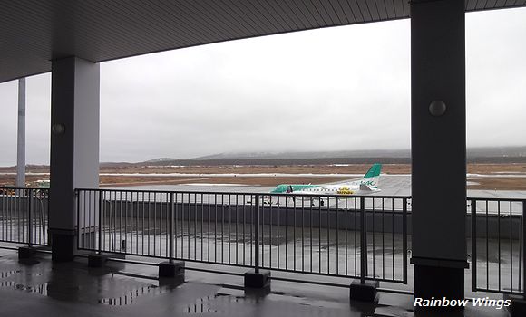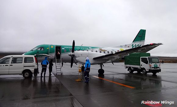 HAC673便、利尻空港到着。 2015年4月3日 |