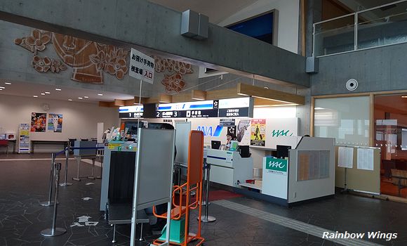 利尻空港、HACカウンター。 2015年4月3日 |