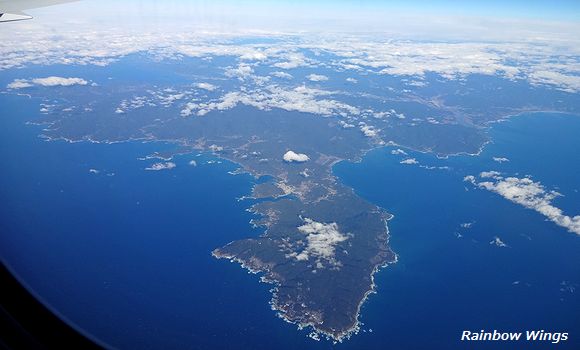 機内アナウンスによると土佐清水市上空らしい。地図を見たら地形が一致した。 2015年1月15日 |