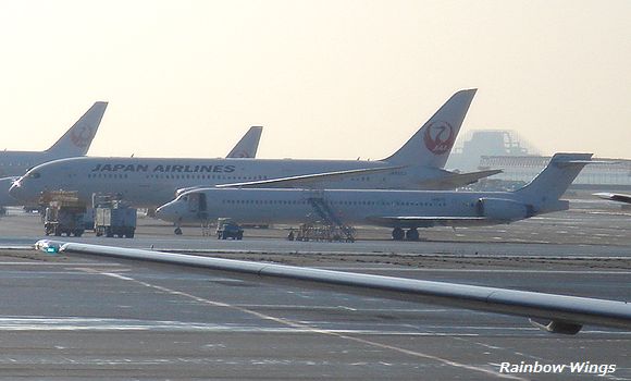MD-90と元レインボーセブンの元JASコンビ。 羽田空港にて 2013年3月15日 |