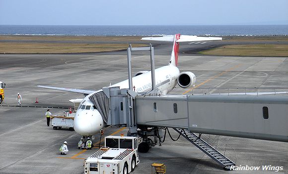 11月は高知龍馬空港。元JASのMD-90(JA8020)とトーイングカーのレインボーコンビ。 2012年11月21日 |