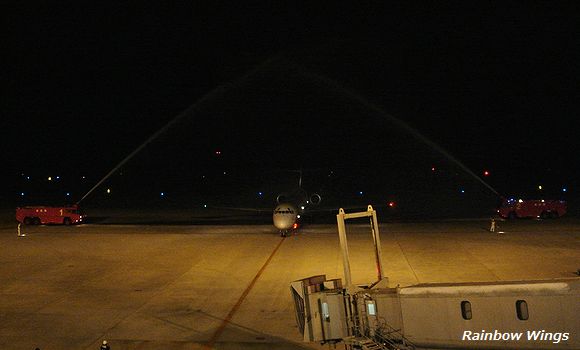 17年間、お疲れ様の放水アーチ。 広島空港にて 2013年3月30日 |