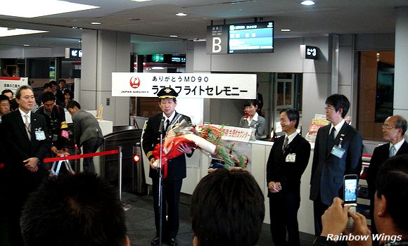 MD-90ラストフライトセレモニー。 広島空港にて 2013年3月30日 |