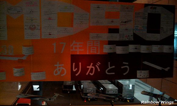 ボーディングブリッジ内には、MD-90への沢山のメッセージが。 広島空港にて 2013年3月30日 |