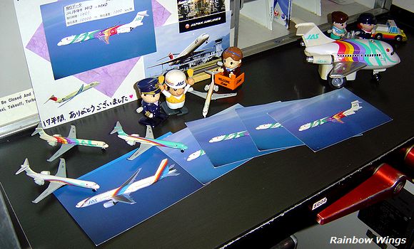 機内には沢山のMD-90&JASグッズが。 広島-羽田航路にて 2013年3月30日 |