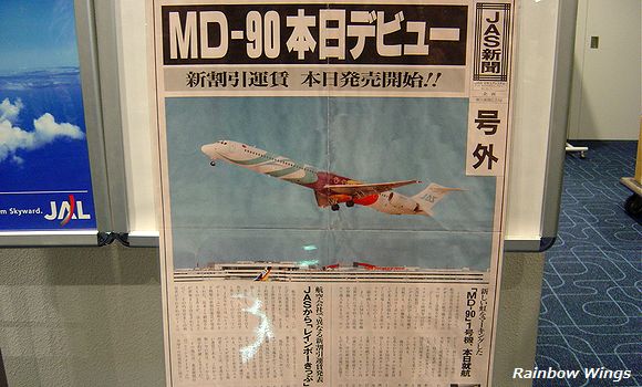 MD-90デビュー時に空港で配布していたJAS新聞。管理人も持ってます。 羽田空港にて 2013年3月30日 |