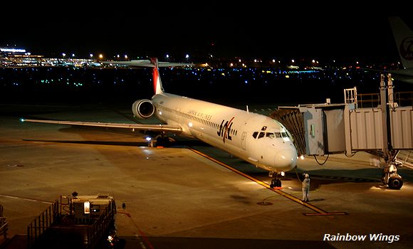 たった1機だけ実現した鶴丸MD-90、JA8070。 広島-羽田航路にて 2013年3月30日 |