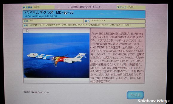 博物館の中に、模型の検索用PCがありました。写真はMD-90を見つけた画面。 2011年7月24日 |