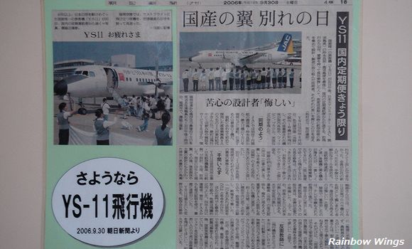 機内に貼られたYS-11退役の際の新聞記事です。 2011年6月4日 |