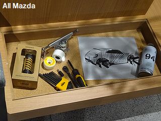 通常このような場所では使われないらしい、マツダの平面エンブレムが見られます。